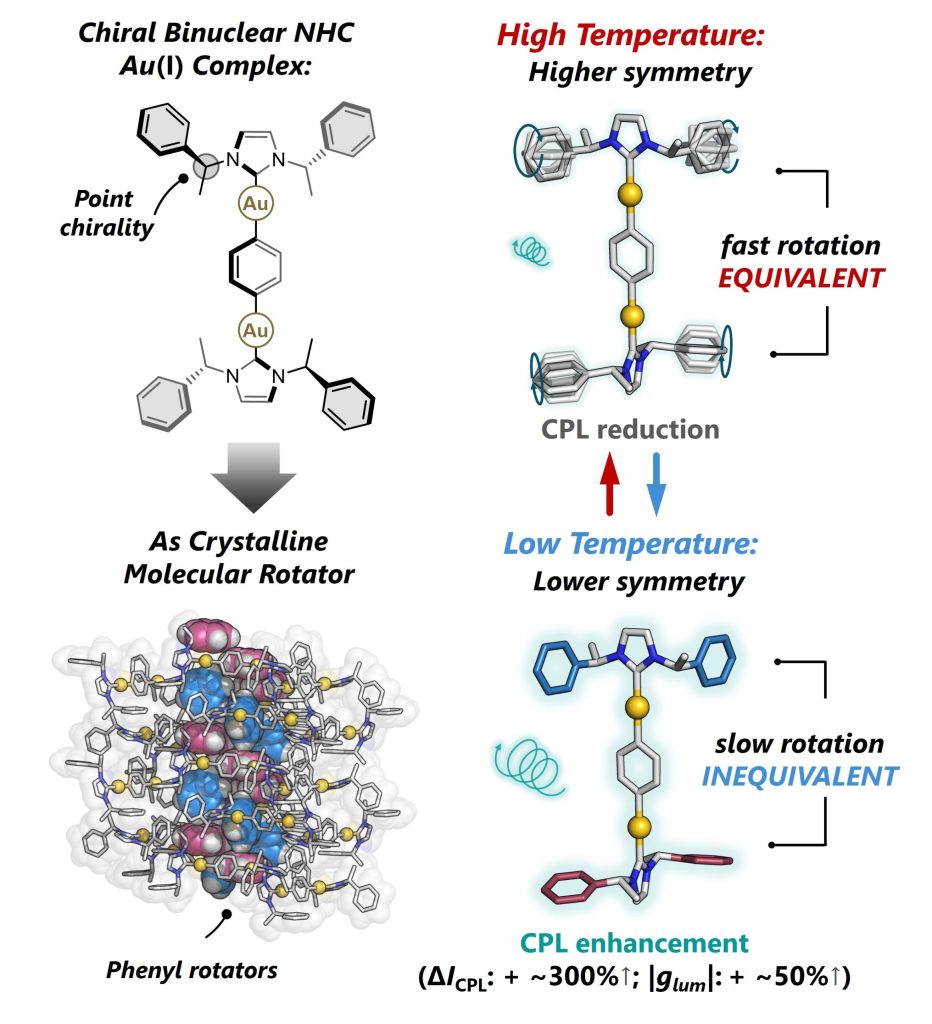 Coupling Molecular Rotation and Symmetry to Control Solid-State Chiroptical Properties in Crystalline Chiral N-Heterocyclic Carbene Au(I) Complexes